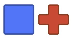 The final subtest on the RIOT is Reaction Time. This subtest has two portions: simple reaction time and choice reaction time. In the simple reaction time portion, examinees are instructed to press a key on their keyboard as soon as they see a blue square. This task is presented 20 times (including practice items). In the choice reaction time portion, examinees are told to press the “1” key when they see a blue square and to press the “2” key when they see a yellow plus. This task is also presented 20 times (including practice items). Between each item, there is a preparation screen that lasts between 3 and 10 seconds. This time interval is chosen randomly. The stimuli for this task are shown below.