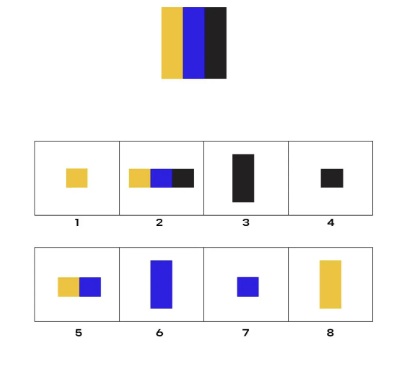 The Visual Puzzles subtest is designed to measure fluid reasoning with visual stimuli. On the RIOT, items on the Visual Puzzles subtest consist of a target image and a set of 8 options. Between two and four of the options can be assembled to create an image that is identical to the target image in size, color, and shape. An example of a Visual Puzzles item is shown below.