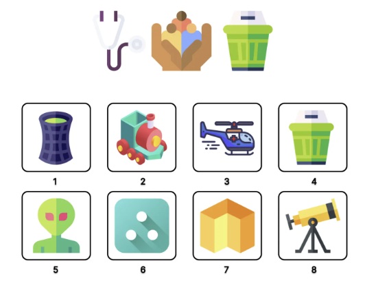 To create the items for the Exposure Memory subtest, the RIOT team identified simple artwork that was in the public domain online. Most of these images were software icons. These were then programmed to be showed in the different sequences and arrays for each item.