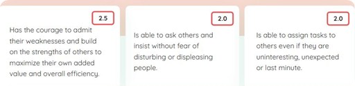 In this example we can see that this person’s Delegation abilities are low,